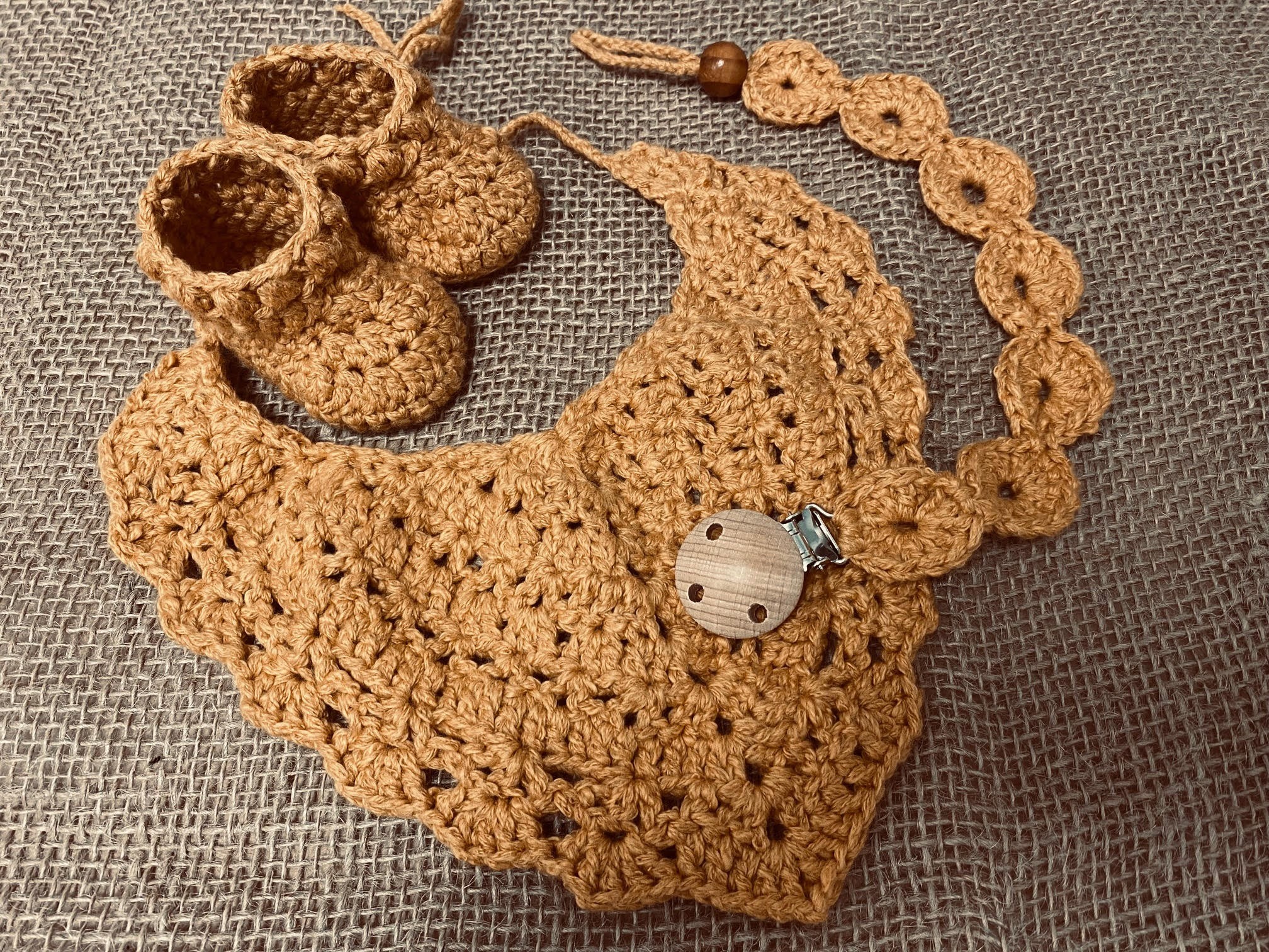 Bavoir, chaussons et attache-sucette